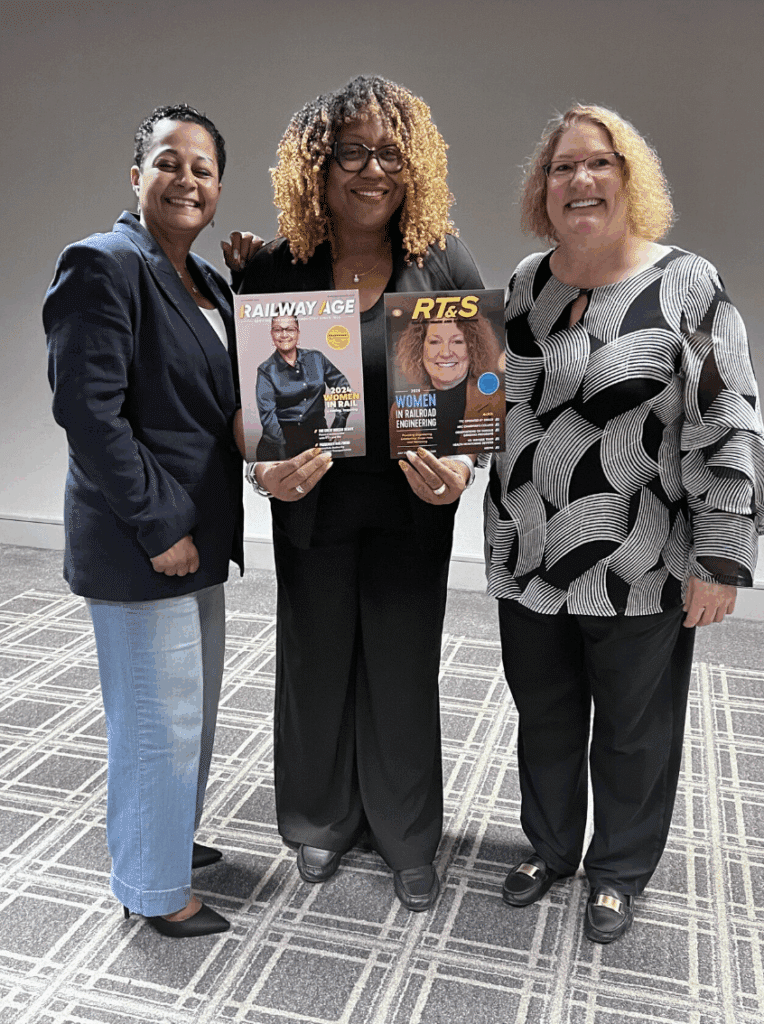 Pictured, right, with Janice R. Thomas of Metra, who served as a Leadership Journeys featured speaker, are Gina Drinkwater, Shop Superintendent at Metra (left), and Jere Alwin, Signal Design Manager of Metra (right), who were presented with awards as part of the 2024 Railway Age Women in Rail and 2025 RT&S Women in Railroad Engineering programs, respectively.