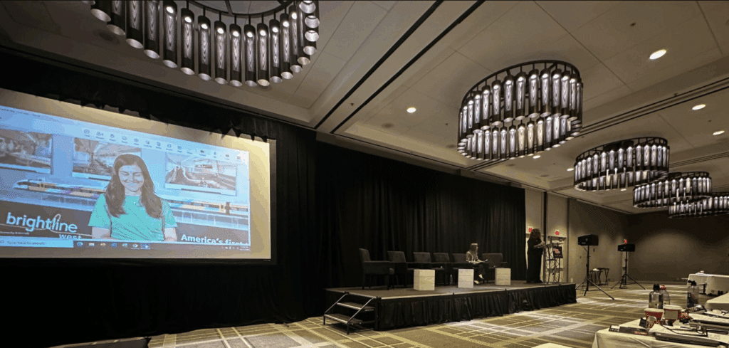 Rounding out the Leadership Journeys session were Janice R. Thomas, Deputy Executive Director, External Affairs/Chief of Staff at Metra (pictured above), and Sarah Watterson, President of Brightline West (pictured top, on screen via Microsoft Teams). They highlighted not only their backgrounds and the commuter and high-speed rail markets, but also how they deal with adversity and the importance of women and their allies lifting each other up. The Leadership Journeys talks were impactful, touching many in the audience.(Top Photograph Courtesy of Lisa Tackach; Bottom Photograph Courtesy of Willie D. Mills)