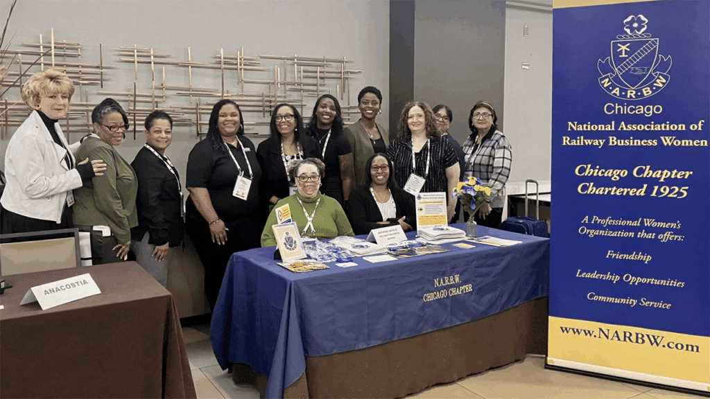 A networking reception, sponsored by R.J. Corman, closed out Day One. As a bonus, author Chris Enss (far left) was on hand to share highlights from her latest book, “Iron Women,” celebrating women’s contributions to the rise of the rail industry. In addition, attendees visited the booths of conference sponsors and supporters like Anacostia Rail Holdings, Amsted Rail, and the Chicago Chapter of the National Association of Railway Business Women, which turned 100 this year! (Photograph Courtesy of NARBW)