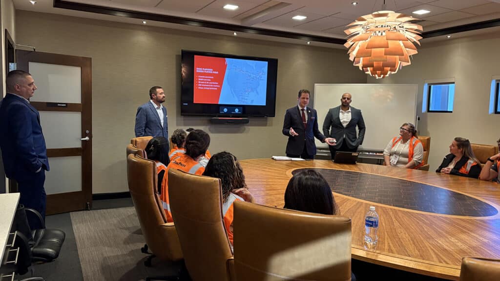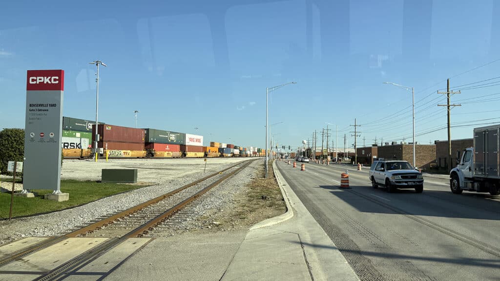 Conference attendees ended Day Two with a special tour sponsored by RailPros. They visited Bensenville Yard, Canadian Pacific Kansas City’s primary classification yard in Chicago. Located just south of O’Hare International Airport, Bensenville is a key logistics hub for the Class I railroad’s intermodal operations. It is also home to an auto compound, built as part of the yard reconfiguration project that started in 2022. Our sincere thanks to our guides: CPKC’s Larry Lloyd (AVP for US Government Affairs); Wes Gendi (Director of Industrial Development South); Jake Rinnels (General Manager of Operations), and Josh Pennington (Superintendent of Operation). (All Photographs Courtesy of Marybeth Luczak)