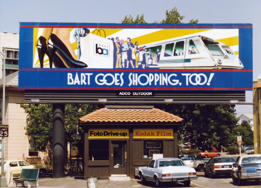The stories behind the ads are as fascinating as their content. Before Henny Youngman became inextricably linked to BART and its image, Healy came up with the “BART goes shopping, too!” campaign–an iconic image showing passengers loaded with shopping bags and boxes waiting to get on a train.