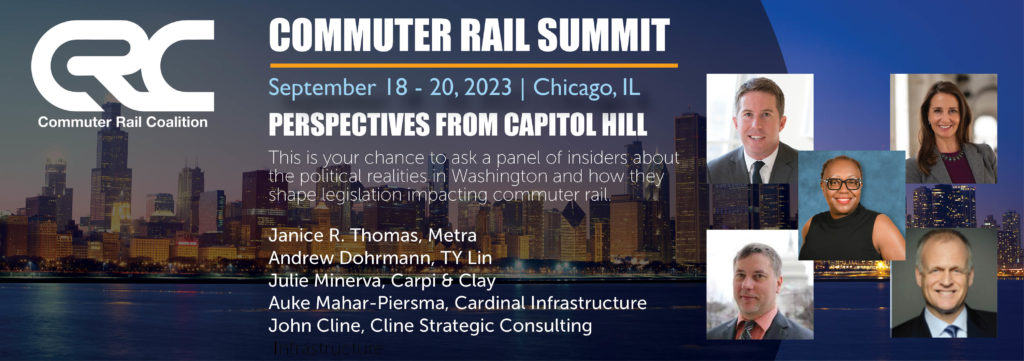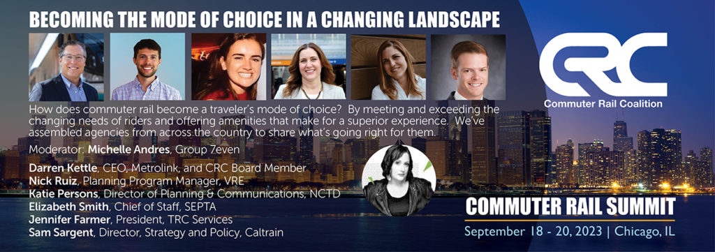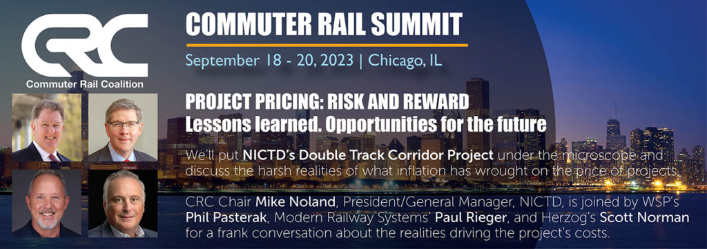The Commuter Rail Coalition is hosting its 2023 Commuter Rail Summit at the InterContinental Hotel in Chicago Sept. 18 -20, an event organizers note is “an opportunity to connect with industry peers in an intimate setting to explore new ideas and collaborate over today’s most pressing commuter rail issues.”