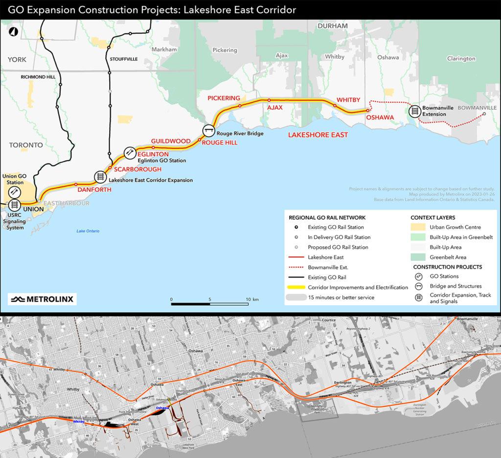 Metrolinx said it continues to advance discussions with third parties to deliver the four GO stations proposed for Thornton’s Corners East, Ritson Road, Courtice and Bowmanville through the Transit Oriented Communities (TOC) program along the Bowmanville Extension. The TOC program “seeks to leverage the value of Metrolinx’s transit network and service to have third parties fund the design and construction of new GO station infrastructure for Metrolinx to own and operate.”