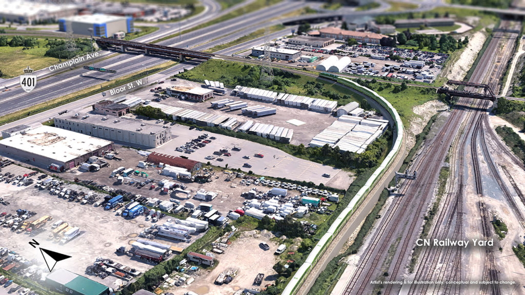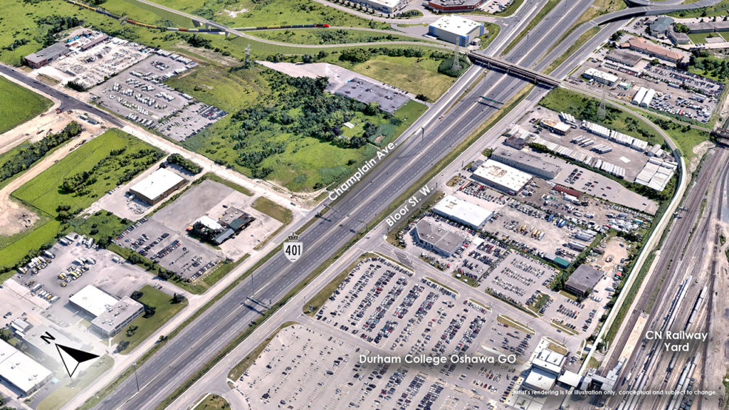 Proposed GO rail alignment from Durham College Oshawa GO Station to north of Highway 401. Metrolinx rendering