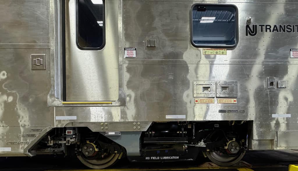 The ML IIIs will completely replace NJT’s aging Arrow III EMUs, last rebuilt by ABB Traction (now part of Alstom) in the mid-1990s, as well as some older single-level Comet II, III, IV and V cars acquired during the agency’s 40-year history. Rated at 110 mph maximum operating speed (10 mph higher than the ML I and II), they tout “a dramatic improvement in mechanical reliability” of an estimated 400,000 miles MDBF (Mean Distance Between Failure), according to NJT. The FRA has granted NJT a waiver to allow federally mandated shop inspections to occur every 184 days, rather than the customary 92.