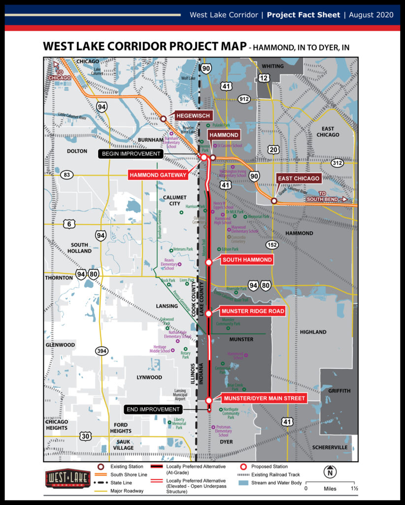 Slated for completion in 2025, the Northern Indiana Commuter Transportation District’s (NICTD) single-track West Lake Corridor Project will run from Hammond, Ind., (north) to Dyer, Ind. (south) and include four new stations (see map below). Sidewalks, walking trails, and bike paths in and around station areas will also be added. F.H. Paschen and Ragnar Benson (both based in Chicago) are leading construction of this southern branch line.