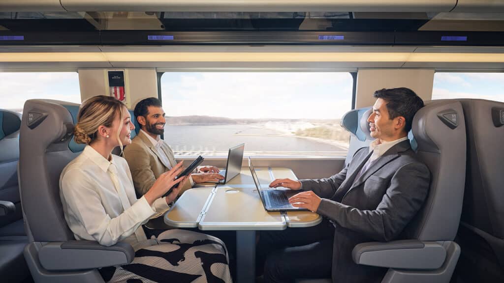As well, Amtrak noted, the NextGen Acela “is a key component of our broader fleet modernization plan,” which includes new Siemens-built Amtrak Airo equipment debuting on the Amtrak Cascades, Northeast Regional and East Coast routes; new Siemens ALC-42 locomotives on Long-Distance routes, and upgraded interiors in coaches, dining cars, sleeper, and Sightseer Lounges “featuring new seat cushions, upholstery, lighting and finishes.”