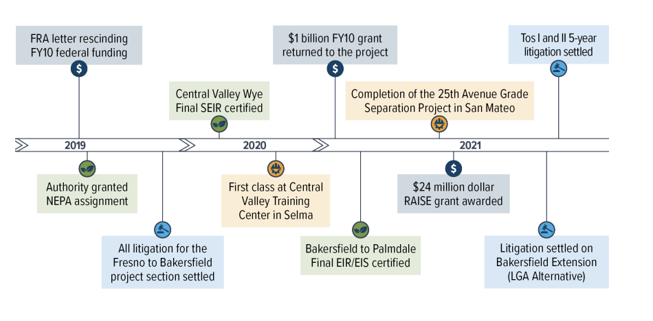 - Contracts were awarded to begin advanced design work on the extensions to Bakersfield and to Merced.