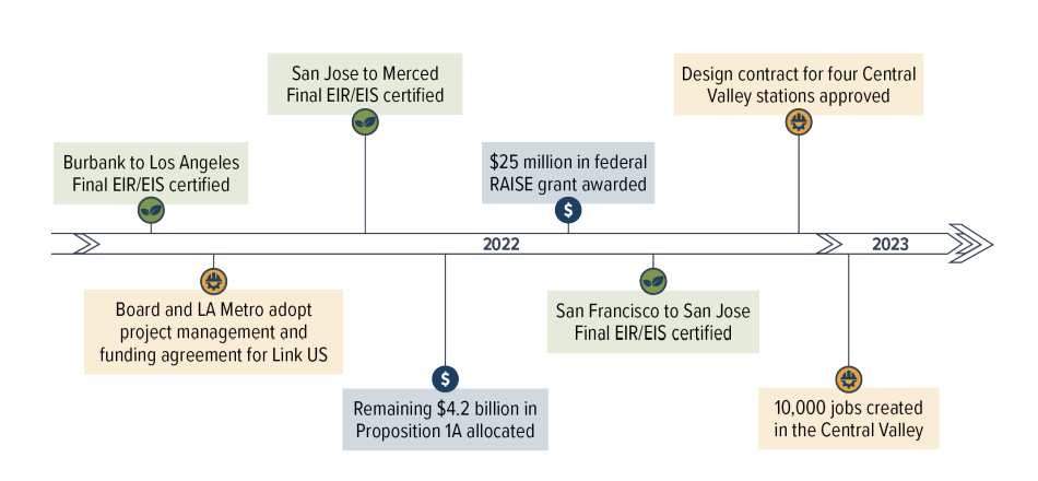 - Steps to advance design on extensions to Merced and Bakersfield and Central Valley stations.