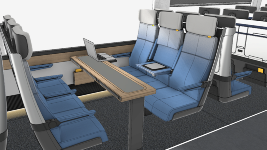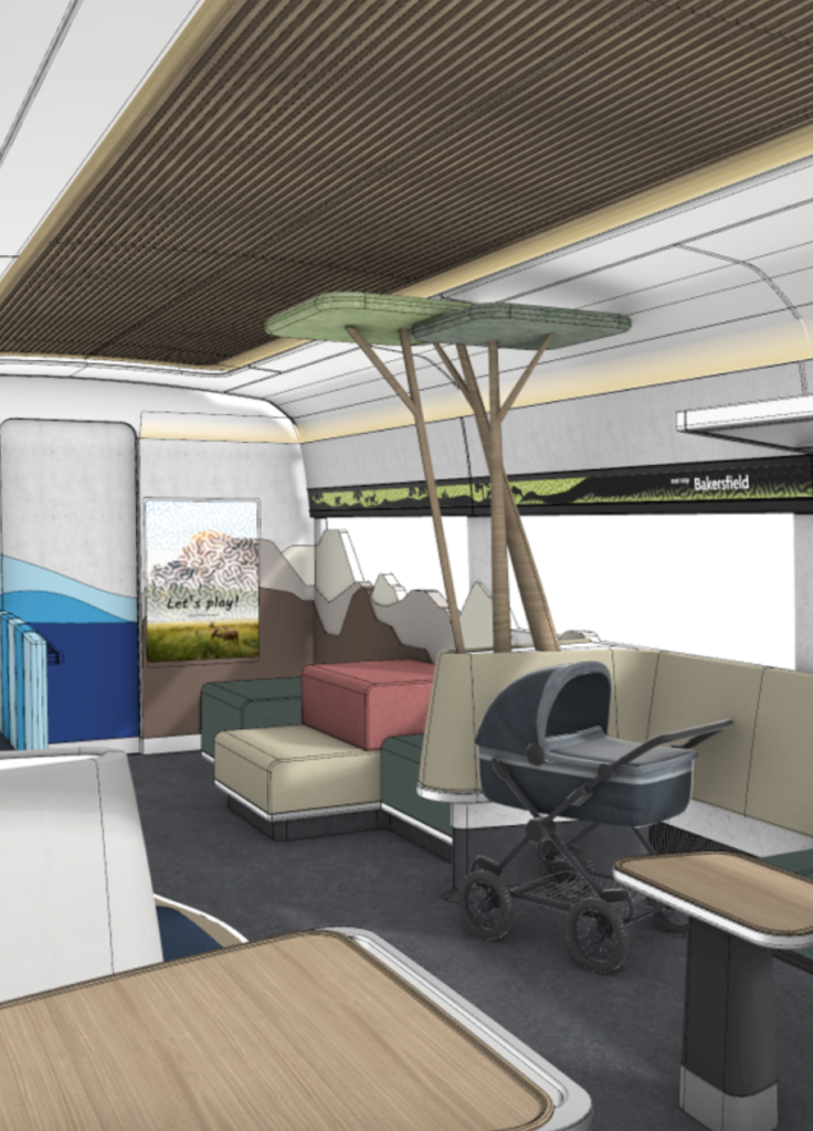 The mockups and renderings, which CHSRA said are subject to change, show the potential space, amenities and seat arrangements. Highlighted are premium seating, including “cocoon”-style designs, and flex and comfort seating, plus family areas, accessible restrooms, and café cars.