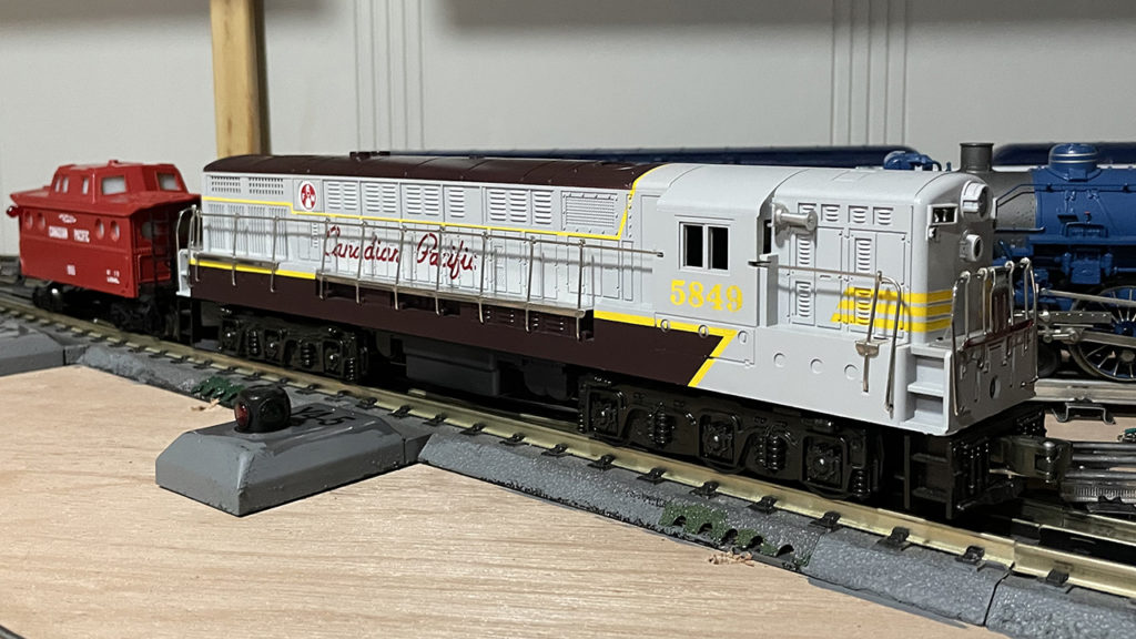 Editor’s Supplemental Note: Yes, I know Railway Age is not a publication that covers model trains, but many in this industry do enjoy collecting and operating them. Below is my O gauge Canadian Pacific Fairbanks-Morse H-24-66 Train Master coupled to my CP N5C caboose. F-M and Canadian licensee Canadian Locomotive Company built 127 of these opposed-piston, 2,400-hp units from 1953 to 1957. CP rostered 21, CN 1. For you “rivet-counters,” the road number on the model is incorrect. CP’s units were numbered 8900-8920. According to Wikipedia, only one Train Master has survived intact: former CP 8905, owned by the Canadian Railroad Historical Association, which operates the Canadian Railway Museum in Saint-Constant, Quebec. Former Norfolk & Western Railway Train Master cab-less slugs survived well into Norfolk Southern service, with one currently preserved at the Reading Railroad Heritage Museum in Hamburg, Pa., where Class II Reading & Northern is based. – William C. Vantuono