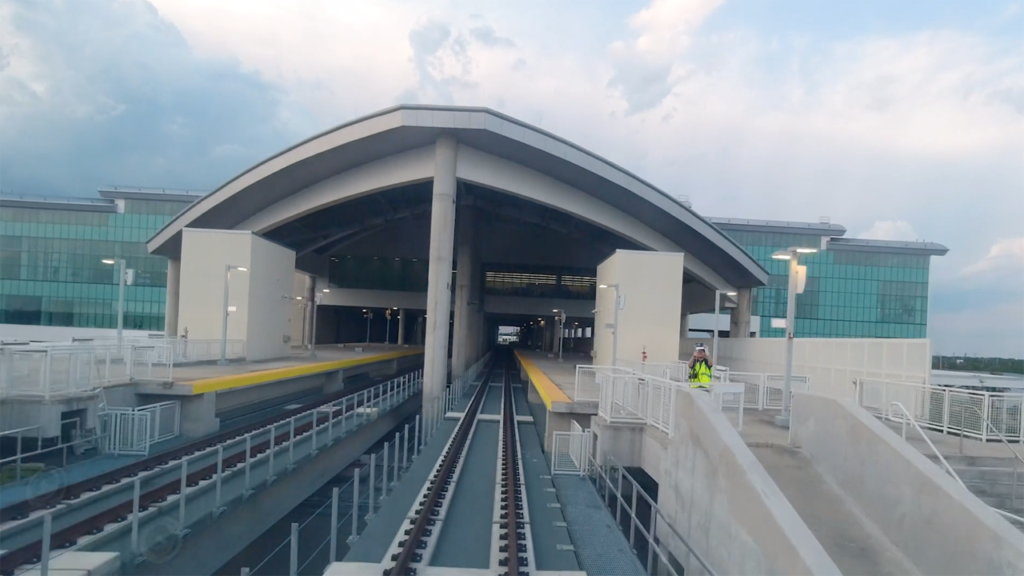 On May 17, the first train arrived for testing at the Orlando International Airport (OIA) station, part of the new Intermodal Terminal Facility. Brightline reported that its $2.7 billion, 170-mile extension to Orlando (see map below) is nearly 80% complete; construction is expected to wrap up at the end of the year, with service starting in early 2023. (Daily crew training and qualifying test runs between West Palm Beach and Cocoa began in January.)