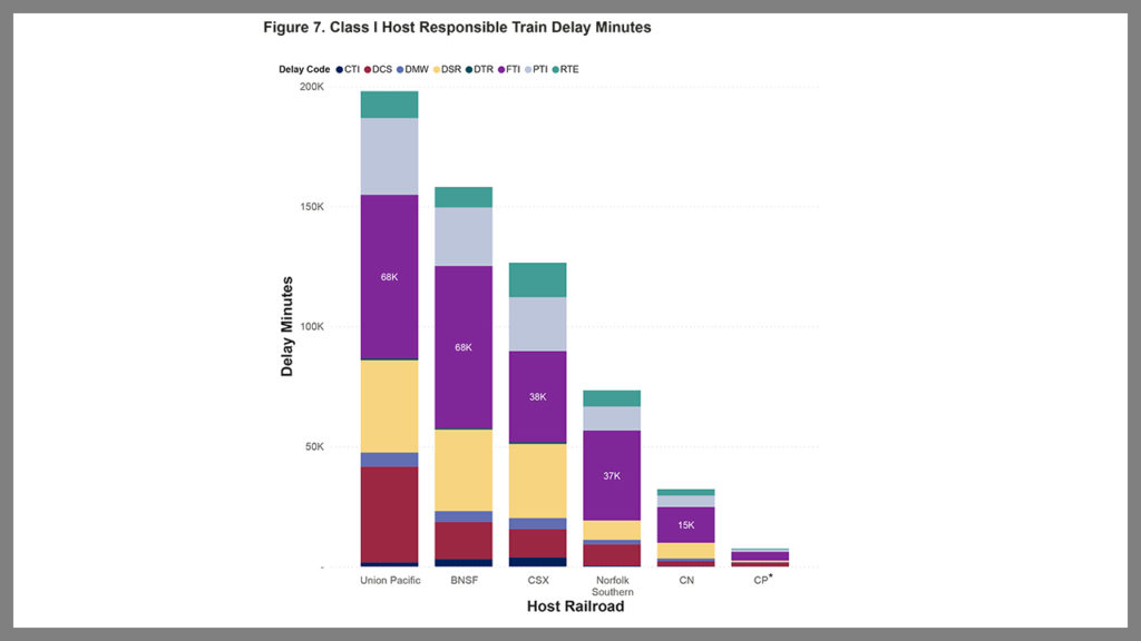 FRA said the largest cause of delay was “freight train interference” at 234,110 minutes of delay (3,901.8 hours; 162.6 days; 23.2 weeks; 0.45 years), 18% of total delay time, a 7% decrease from the previous quarter and a 10% decrease from the second quarter of FY 2022. Other significant causes of delay were “passenger train interference, slow orders, and signals.”