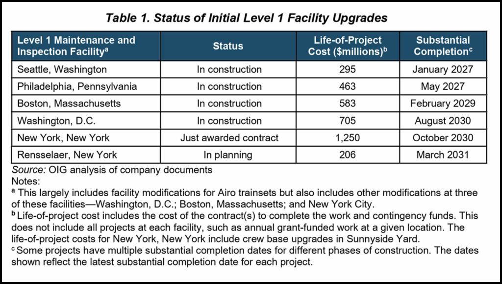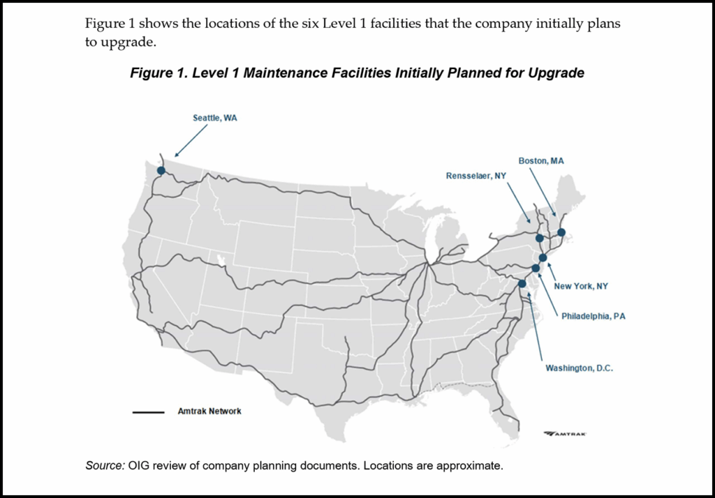 This report, “Major Programs: Improved Planning for Maintenance Facility Upgrades Could Help the Company Better Meet Its Fleet Goals,” is the result of OIG’s audit of Amtrak’s National Facilities program. “Our objective was to assess the company’s management of the program and to identify any risks to achieving its goals,” said the OIG, which conducted its work from December 2024 through December 2025 in Seattle, Wash.; Boston, Mass.; New York, N.Y.; Philadelphia, Pa.; and Washington, D.C.