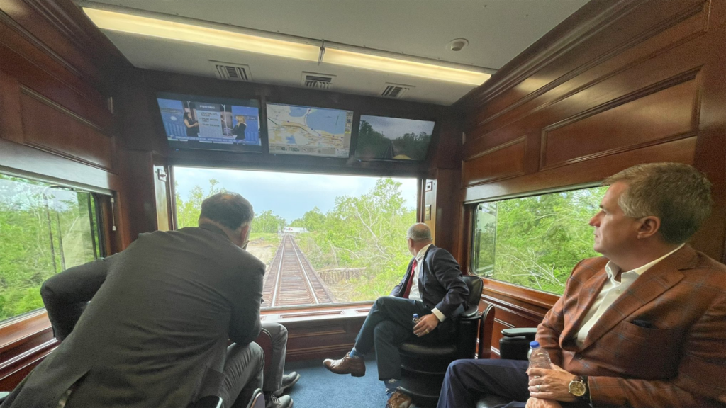Among the others participating in the inspection trip were KCS President and CEO Pat Ottensmeyer, who supplied the train; CP President and CEO Keith Creel; and FRA Administrator Amit Bose. Ottensmeyer and Creel are Railway Age’s 2022 Railroaders of the Year.