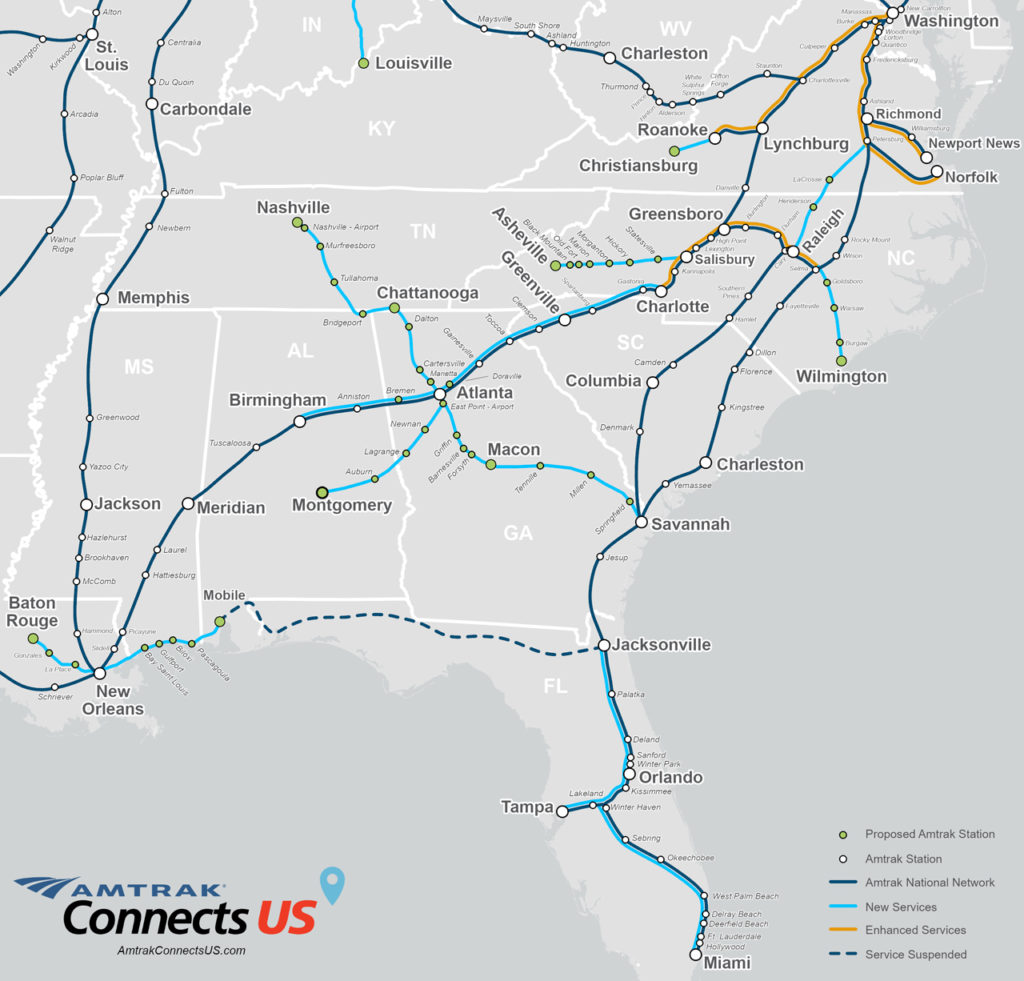 Canadian Pacific (CP) is among those supporting the project. On Jan. 6, the Class I railroad announced its commitment, subject to Surface Transportation Board approval of the CP-KCS merger; it could potentially host one round-trip per day. And Louisiana’s most recent State Rail Plan identified the 80-mile corridor as the state’s “highest priority passenger rail route.”