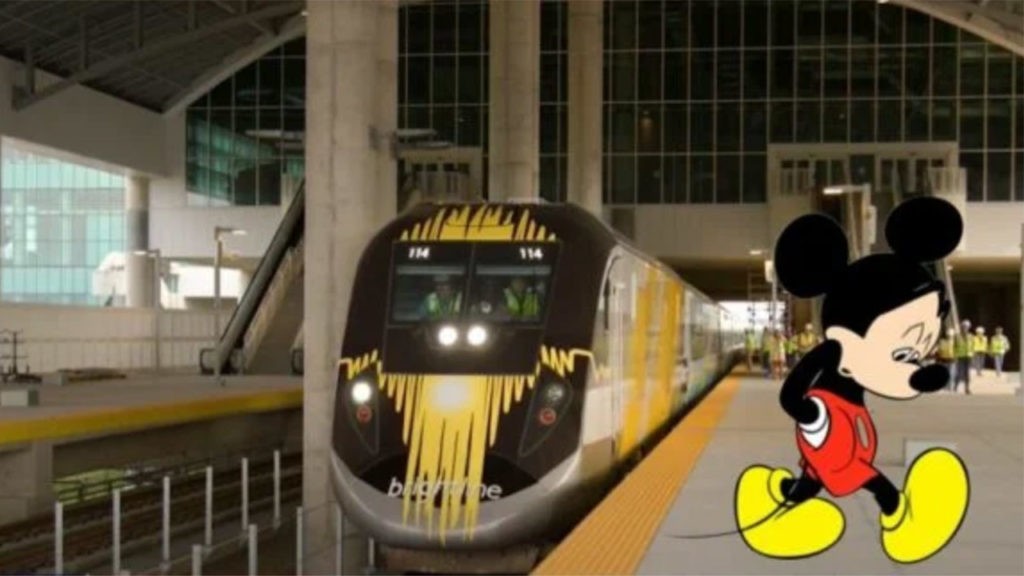 There is a Disney fan site called www.disneydining.com that is not affiliated with the Disney organization, but it reports news about what’s happening on and around the Disney properties. On June 27, the site carried a picture of a Brightline train standing at a station. On the platform was Mickey Mouse, walking away from the train with his hands in his pockets and a glum expression on his face.