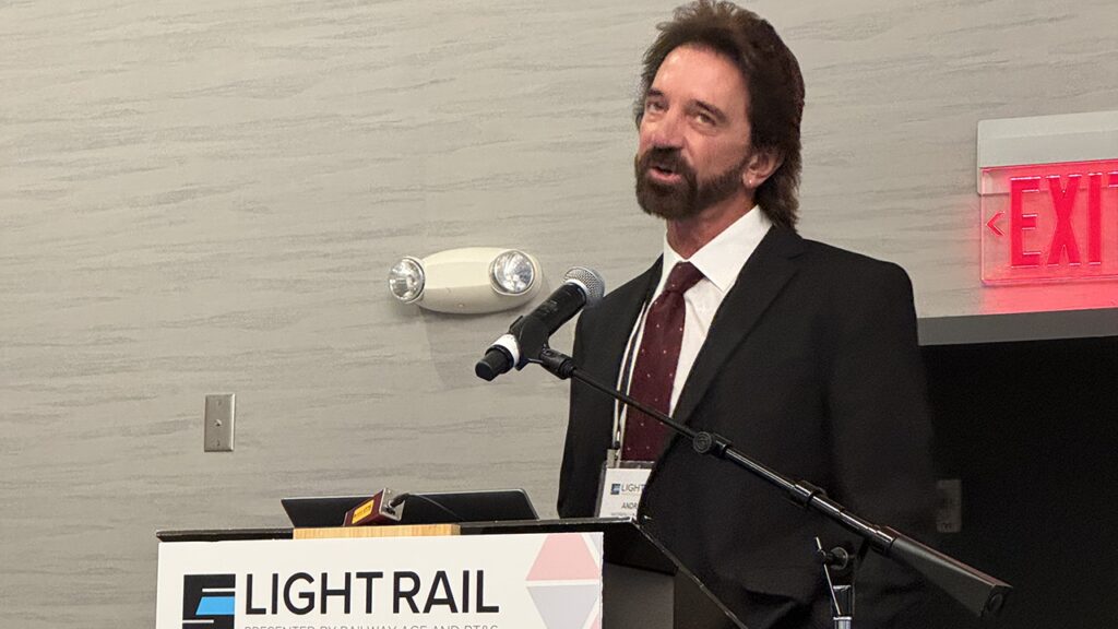 Tony Crosby of 4AI Systems then discussed AI-based applications suitable for light rail. He promoted fitting servers on the front of vehicles to collect data, which he said would improve operations and safety. He suggested that virtual trip stops could replace trackside trip stops but stressed that it’s necessary to demonstrate that there will be no adverse effects on safety or mobility. He said that AI can be used to look for hazards and added: “If a system can’t prevent a collision, it can reduce its gravity.” As a general concept, he mentioned the comparison between “smart trains” and “dumb trains.”