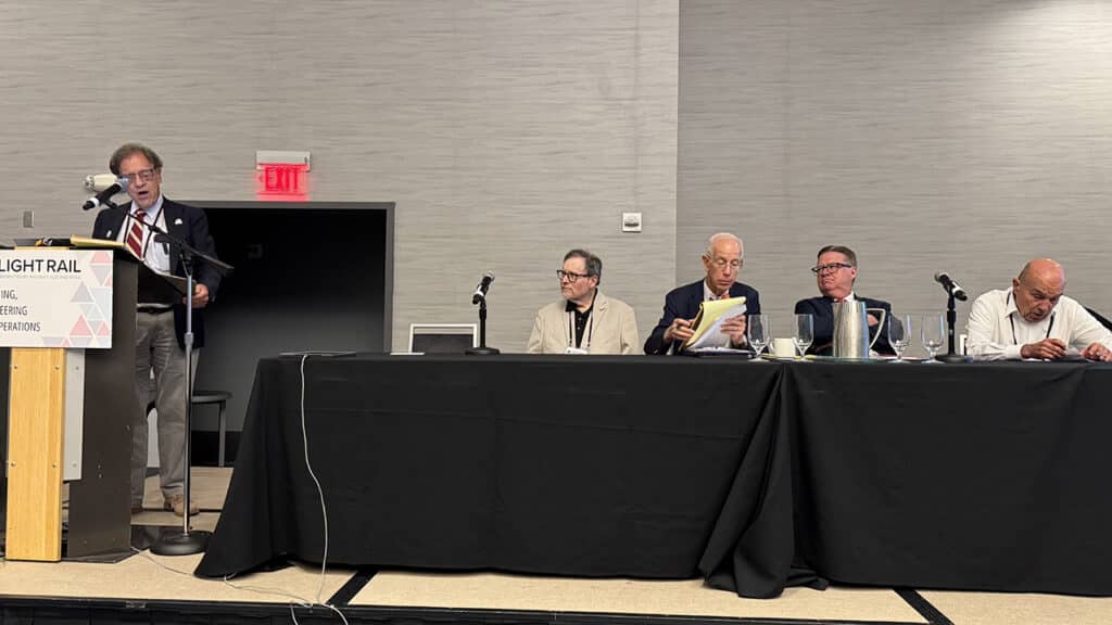 Hans Cruse, Sales Manager for the North American streetcar market at Stadler Rail, concluded the proceedings with a case study on Green Technology Applications for Light Rail. They include new alternative-propulsion vehicles operating on existing lines. He said that new systems are lighter in weight and can reduce energy consumption and noise pollution. He mentioned the hydrogen-powered FLIRT (“Fast, Light, Innovative Regional Train”) which will run between San Bernardino and Redlands, Calif. Local advocates in the area have questioned how beneficial such a train will be for the environment, but time will tell after the unit at issue has been tested in service.