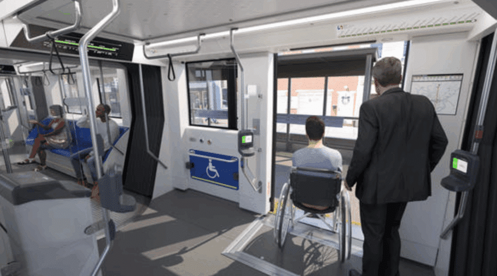 The trolleys currently operating in Philadelphia are 40-year-old Kawasaki cars from the 1980s, which needed to be replaced with more accessible vehicles. Our modern Citadis LRV is multi-articulated, bidirectional, fully ADA-compliant (American with Disabilities Act), and features a 100% low flat floor for easy boarding. It also includes designated open spaces for wheelchairs, bikes and strollers, as well as USB ports and an audio-visual passenger information system.