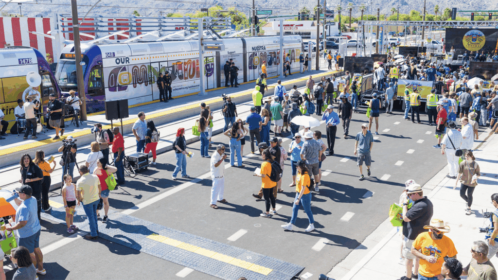 “The completion of this project marks an important new connection for residents and moves us closer to our goals as a sustainable and accessible city,” noted Mayor Kate Gallego. “This historic extension introduces the region’s first two-line rail system, creates safer streets and new bike lanes, and adds shade and public art—all while connecting more residents to jobs, education, entertainment and other amenities across the Valley. Equally important, it provides a whole new opportunity to showcase the unique offerings of this thriving corridor.”