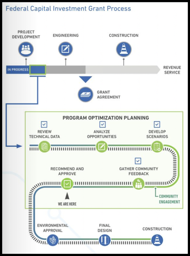 During the public engagement period for the plan, ATP said it interacted with more than 8,000 community members through 90 in-person and virtual events, and their feedback showed support “for the advancement of a light rail project that prioritizes ridership, connectivity, and access to opportunities and also maximizes coverage and seamless integration into other transportation systems” (download engagement report below).