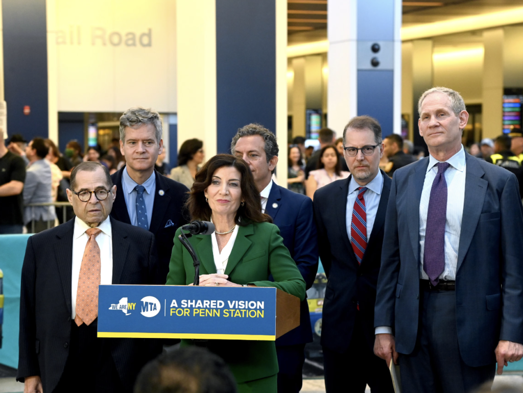 The announcement of the Notice to Proceed took place with Gov. Kathy Hochul, local elected officials and railroad partners gathering on June 26 to express their “united support for a vision of Penn Station Reconstruction.”