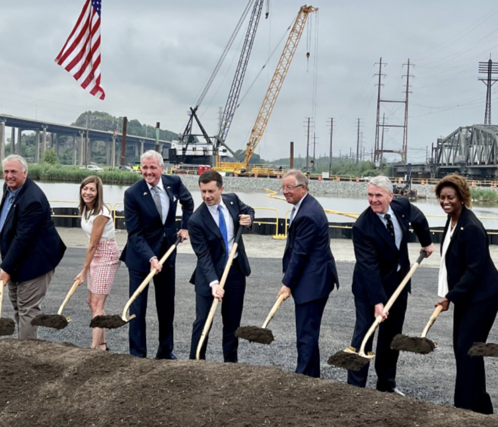 New Jersey Gov. Phil Murphy, alongside U.S. Department of Transportation (USDOT) Secretary Pete Buttigieg; Senators Cory Booker and Bob Menendez; New Jersey Department of Transportation (NJDOT) Commissioner and NJ TRANSIT Board Chair Diane Gutierrez-Scaccetti; NJ TRANSIT President and CEO Kevin S. Corbett; and several federal, state, and local officials and project partners gathered on Aug. 1 to celebrate the official physical groundbreaking of the new Portal North Bridge project–a “critical component” of the larger Gateway Program, which will eventually double rail capacity between Newark and New York, according to the transit agency.
