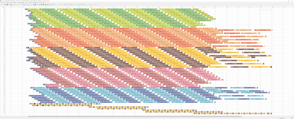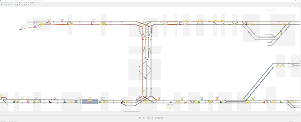 FITZGIBBON: Yes. So it is really fun. The first time I ran that. So basically, I can select all the entire schedule and I can just say play on a map and it opens up this giant map and the trains just run like automatically and it gives you a really good visual representation of what the trains are doing. I can run it at actual speed, which is very slow when you’re looking at it from that perspective or I can run it up to 240 times, so the trains are just zipping around. But it’s a really nice way to tell if there’s anything I missed, I can see things kind of a little bit out and then make sure I double check that there’s no issues.