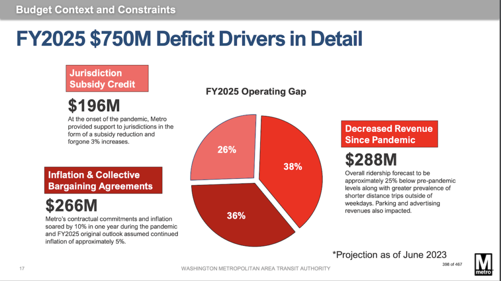 Without a sustainable and predictable funding source to replace federal relief funding, the FY2025 Proposed Budget, the agency says, presents “an unrecognizable Metro due to unprecedented service cuts necessary to close the operating deficit.”
