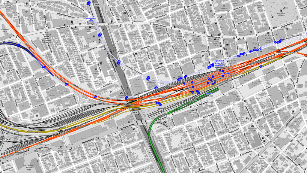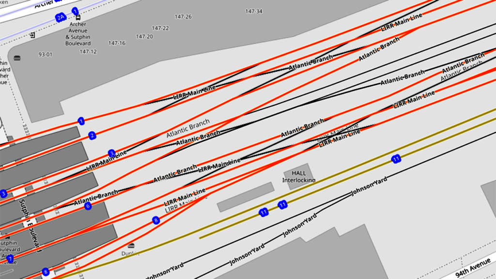 The derailment took place at Hall Interlocking & Tower, a complex interlocking plant with double crossovers just east of Jamaica Station (upper image) that is part of the massive facility (lower image) where multiple LIRR lines converge. “That means until crews can repair the tracks, what’s normally four lanes of train traffic is down to two,” according to the CBS News report.