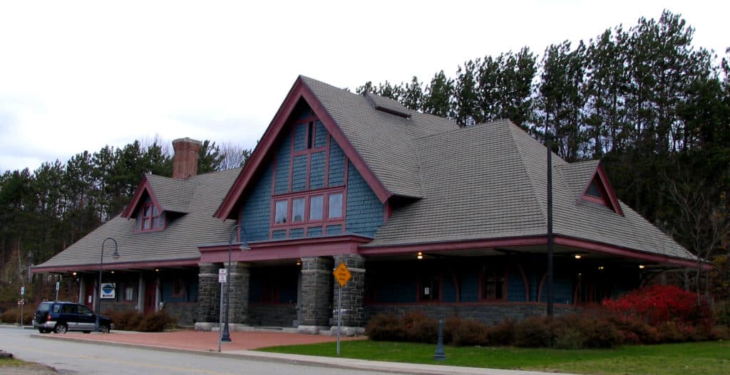 An occasional scenic highlight was a historic station, one of which was a replica built according to the original station plan. That was at Remsen, about 1.5 miles south of Snow Junction and which, according to the railroad, once served 50 trains per day, going in all four cardinal directions. Forestport (MP 35.5), Big Moose (MP 69.3), and Tupper Lake Junction (MP 113.6), where the line terminates. There were more stations in the past, including some private stations built by Dr. William Seward Webb, who built the railroad and then sold it to the New York Central & Hudson River Railroad in 1893.