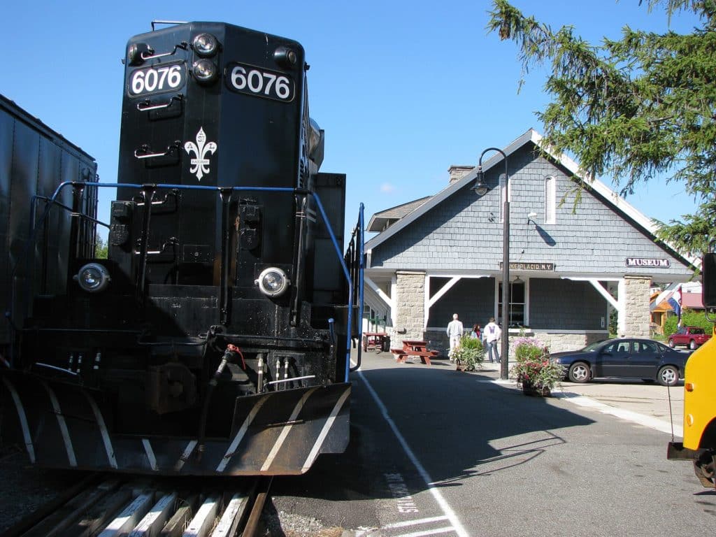 Regular passenger service on the line when it was part of the New York Central ended in April 1965. New York State bought the line from Penn Central in 1974, and trains ran from Utica to take riders to the 1980 Winter Olympics at Lake Placid. It was supposed to be a year-round operation, and I planned to ride the following spring but, by that time, the operation had been discontinued. It came back in pieces, starting in the railroad’s centennial year, 1992. There had been plans to restore service on the entire line, but the Adirondack Recreational Trail Advocates (ARTA) was reported as having the money and the clout in Albany to convince the legislature to turn part of the line into a snowmobile trail. Rail advocacy organizations including the Empire State Passengers’ Association (ESPA) and the Rail Users’ Network (RUN) fought alongside the railroad itself to keep the line intact, but they were no match for ARTA. The 34 miles of track between Tupper Lake Junction and Lake Placid were ripped up in 2020, and the historic stations at Saranac Lake and Lake Placid will never see another train.