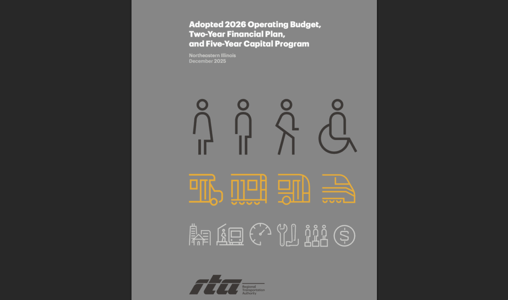 The 2026 budget (download below) includes $4.352 billion in operating expenses for northeastern Illinois’ transit system, and a 2026-2030 Regional Capital Program of $9.246 billion. This budget, RTA says, “ensures continuity across the region with no fare increases and no service cuts, but also supports Service Board improvements in reliability, safety, frequency, and cleanliness while positioning the system for larger changes ahead.”