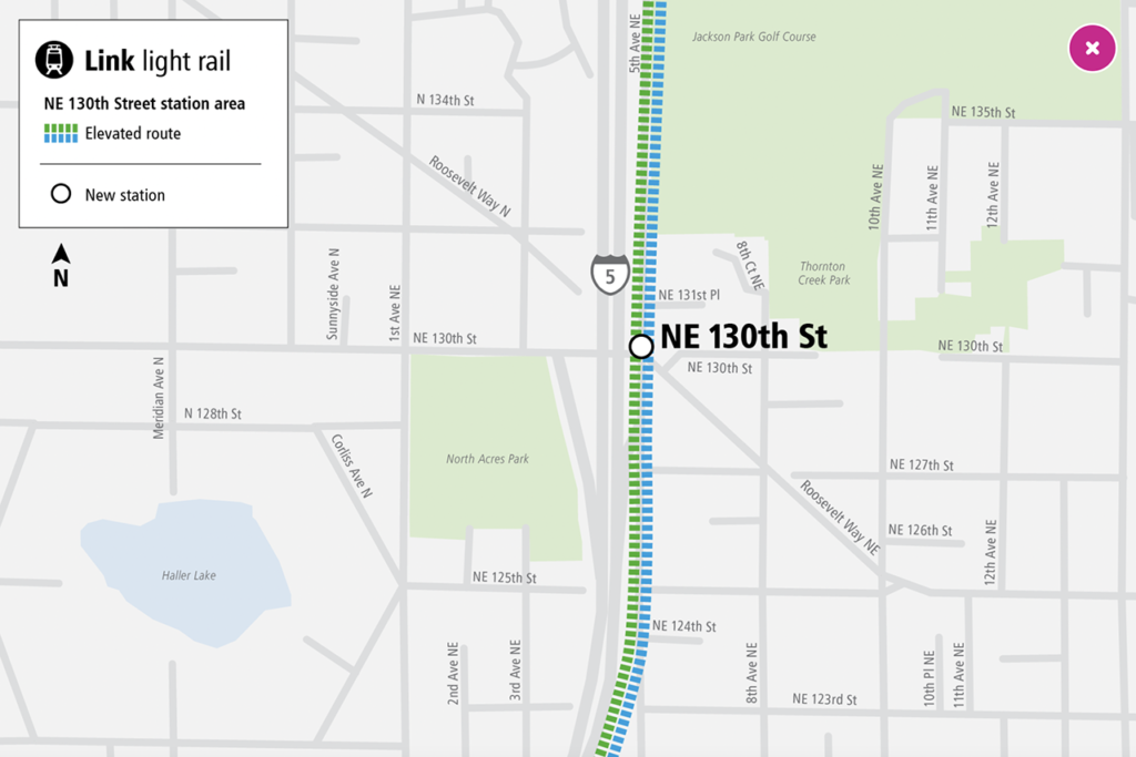 The NE 130th Infill Station was approved by voters in 2016 as an addition to the 8.5-mile, four-station Lynnwood Link extension. The new station will serve a growing residential neighborhood between the Northgate and Shoreline South/148th stations. The NE 130th Street Infill Station is scheduled to open in 2026.