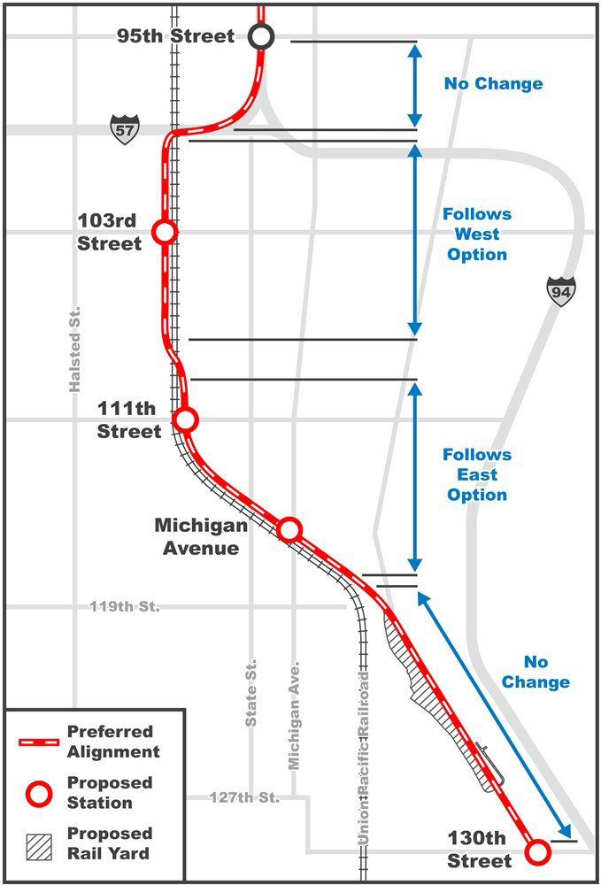 CTA, which will celebrate its 75th anniversary next month, is proposing to extend Red Line rapid transit service from the existing terminal at 95th/Dan Ryan to 130th Street on Chicago’s far South Side (see map, left) as part of its Red Ahead Program. The 5.6-mile extension would include four new stations near 103rd Street, 111th Street, Michigan Avenue, and 130th Street. The project also includes a railcar storage yard and shop facility at 120th Street.
