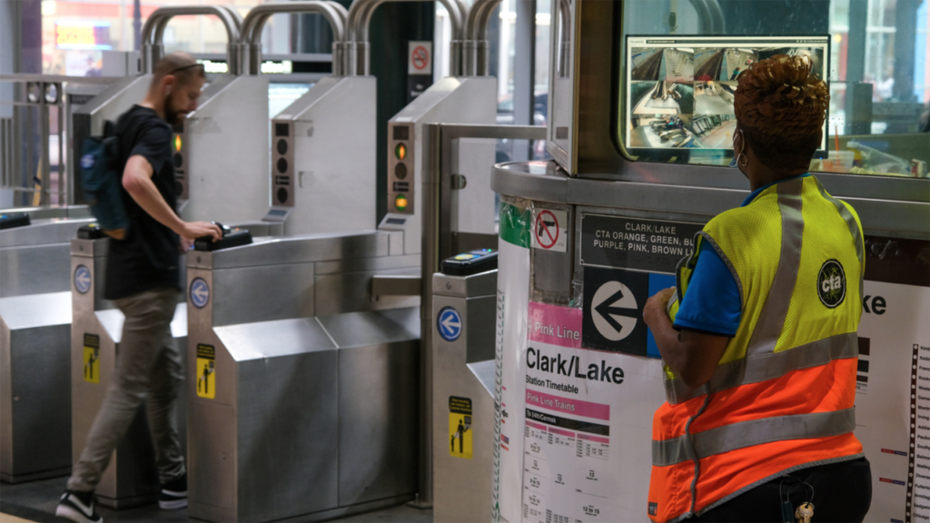 CTA has completed installation of 173 security camera monitors in customer service booths at all 146 rail stations to help “employees stay aware of activity,” the transit agency reported on Sept. 26. Each booth is now equipped with a 21-inch monitor display that provides real-time feeds from that station’s security cameras. According to CTA, each monitor “is positioned to allow the on-duty employee to monitor the screen for activity throughout the facility while they carry out their assigned duties either inside or outside the CA [Customer Assistant] booth.”