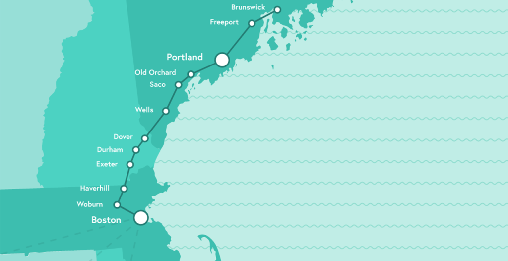 The Downeaster makes five roundtrips daily between Brunswick, Maine, and Boston, Mass., serving 12 communities in Maine, New Hampshire and Massachusetts. The service is operated by Amtrak under contract to NNEPRA.