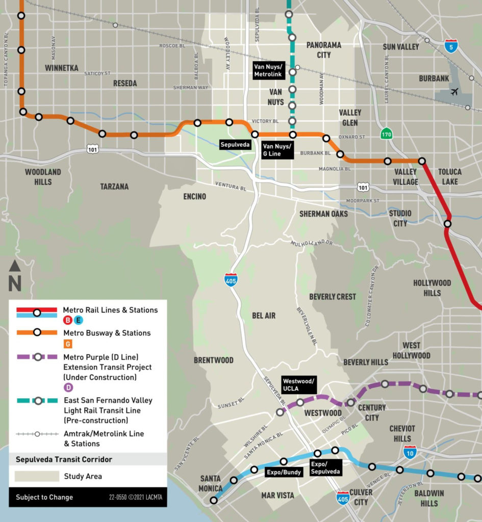 The STC project intends to link Los Angeles’ San Fernando Valley to its westside neighborhoods with innovative, high-speed, high-capacity service that will provide a transit alternative to I-405 traffic congestion. The project is funded in part by Measure M, the transportation sales tax approved by 71% of Los Angeles County voters in 2016. The Measure M Expenditure Plan calls for delivery of the valley to westside project phase by 2033-35 and extension to LAX by 2057-59.