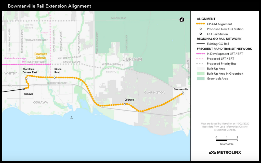 All four stations along the Bowmanville Extension—Thornton’s Corners East, Ritson Road, Courtice and Bowmanville—will be pursued through Metrolinx and the province of Ontario’s Transit Oriented Communities (TOC) program.