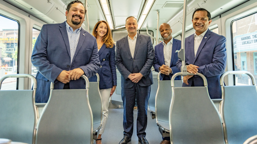 Following the recent $15.9 million USDOT RAISE grant award for Valley Metro’s Rio East-Dobson Streetcar Extension, U.S. Second Gentleman Douglas Emhoff joined local and federal officials on July 19 for an event and a ride on the streetcar system in Arizona.