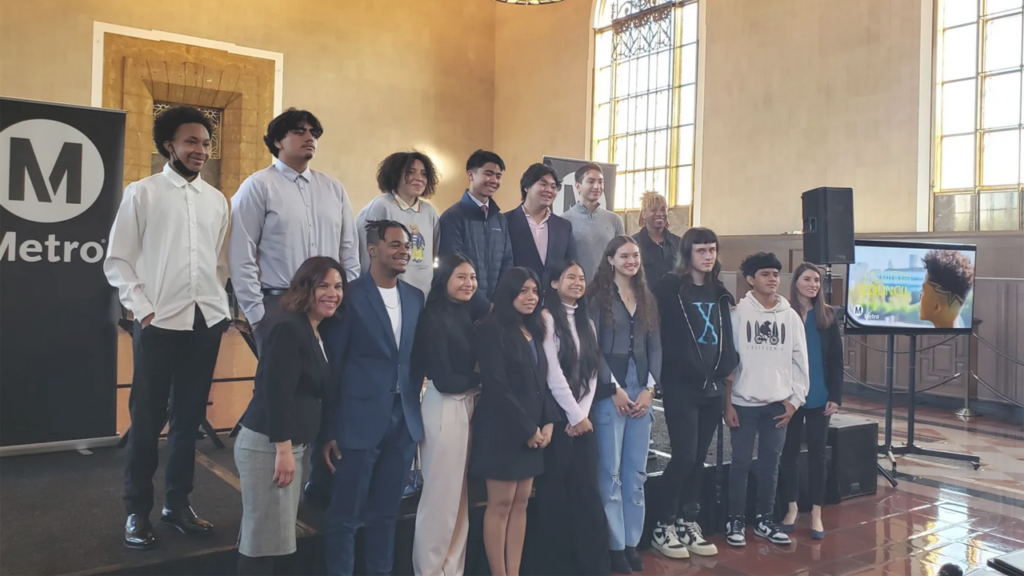 LACMTA’s first Youth Council concluded its one-year term with a celebration at Union Station’s Ticket Concourse, the transit agency reported on Dec. 15. Made up of 27 students between the ages of 14 and 17, the Youth Council represents the nine sub-regions of L.A. County. It was established in 2021 to “develop the capacity of young people to engage with and participate in LACMTA’s plans, projects, programs and initiatives.” Among LACMTA’s aims: to listen to the concerns of young people; empower them to “share their voices in transportation decision making”; and create life-long riders.