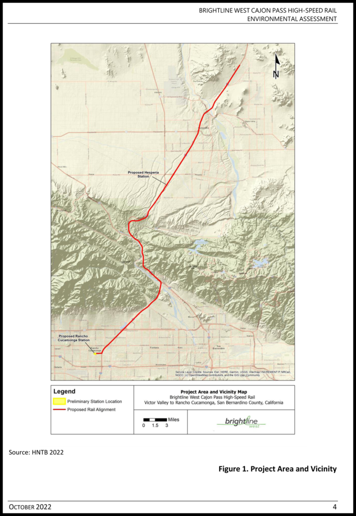 According to an FRA-released environmental assessment, Brightline West is seeking to build a 49-mile high-speed rail system through the Cajon Pass in California, the Victor Valley News Group reported on Nov. 5. Capable of speeds of up to 140 mph, the system would link Victor Valley and Rancho Cucamonga. The project includes two new stations: one in Hesperia and one in Rancho Cucamonga. The connecting station in Victor Valley was approved as part of Brightline West’s separate 200-mile Las Vegas-to-Victorville project that was evaluated in the Final Environmental Impact Statement (Final EIS; FRA 2011).
