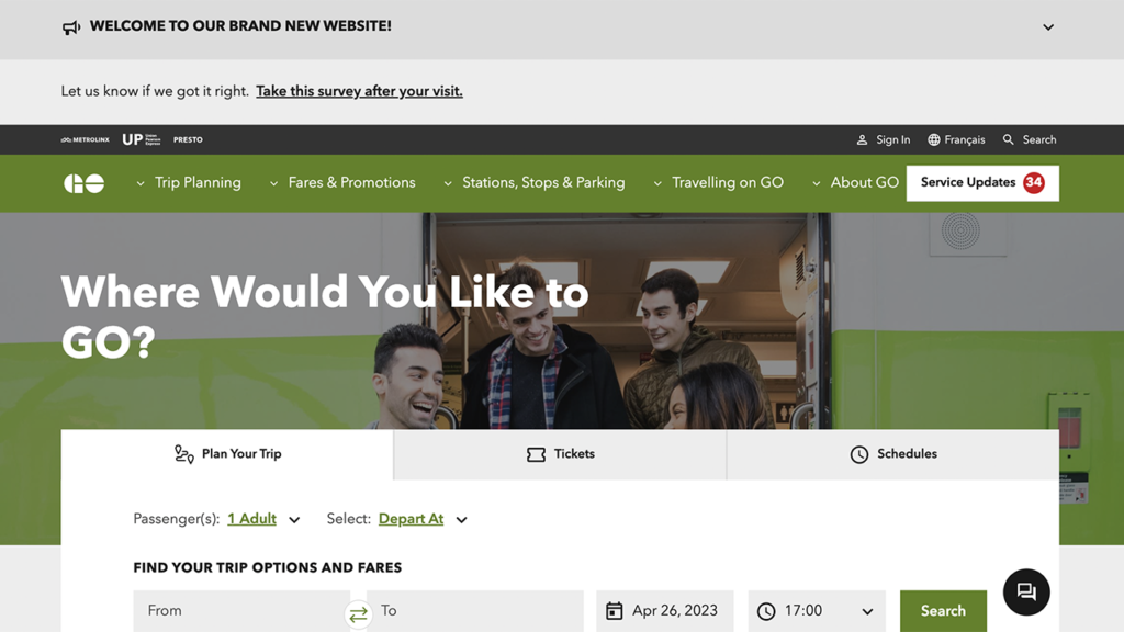 Metrolinx on April 25 introduced a redesigned, easy-to-navigate GO Transit website. It offers accessibility upgrades as well as new online tools, including personalized trip planning. Customers can visit gotransit.com to explore the new beta website, where they can create a profile and customize their experience. The original GO Transit site will be remain available until Metrolinx fully transitions to the new site.
