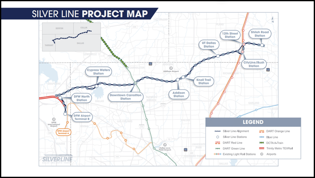 Meanwhile, Flowbird on Sept. 11 reported that it will deliver 228 Astreo ticket vending machines for DART transit stations systemwide. The first set of machines is scheduled for installation by 2025. Full machine deployment is expected in 2026, coinciding with the completion of DART’s Silver Line construction (see map above). DART anticipates opening the Silver Line commuter rail service, which will connect Plano to DFW International Airport, in late 2025 or early 2026.