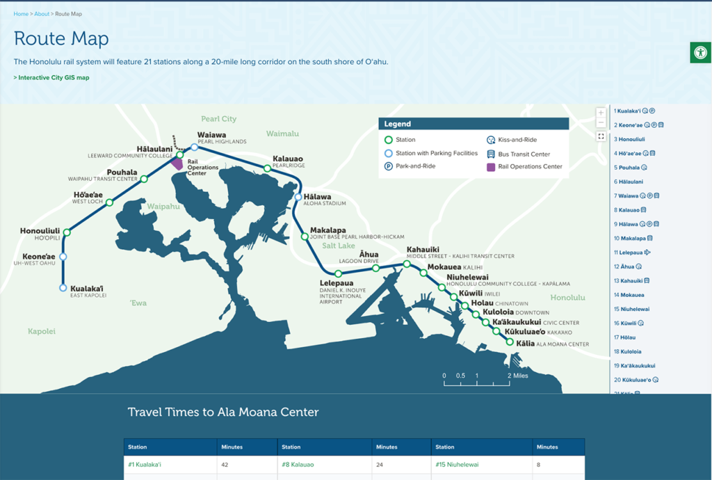 The second segment is progressing from Aloha Stadium to the Middle Street-Kalihi Transit Center. The 5.2 miles of rail guideway and trackwork are complete, and core systems equipment installation for communication control continues in the segment, HART reported. Construction of the four stations ranges from 88% to 97% complete.