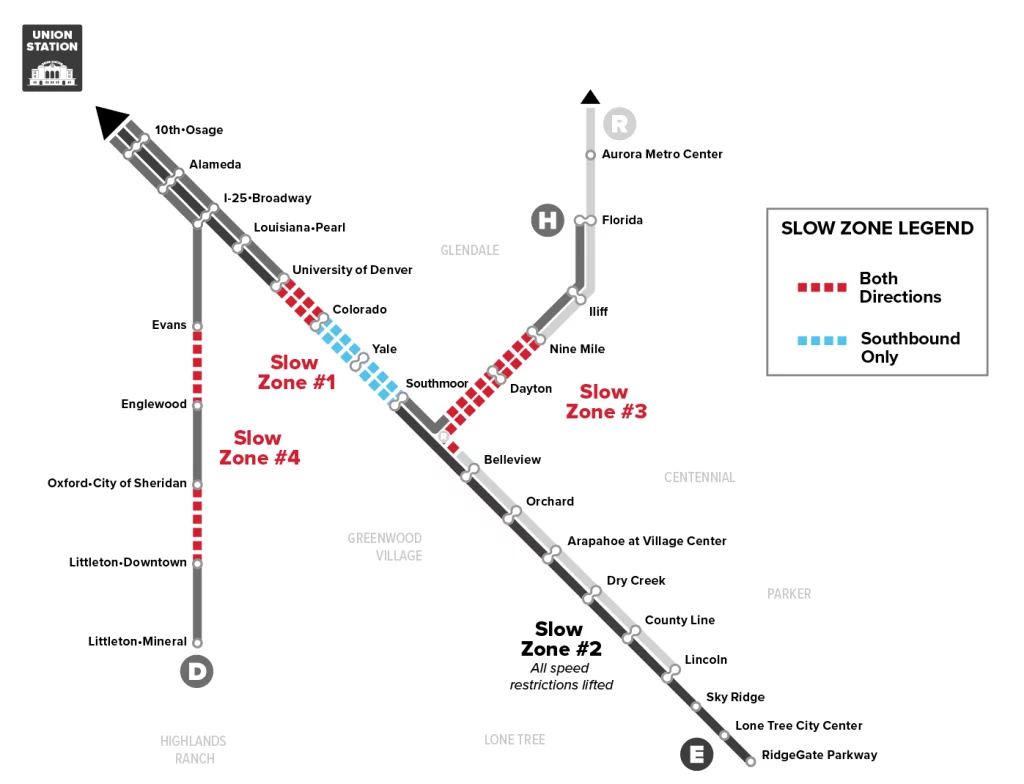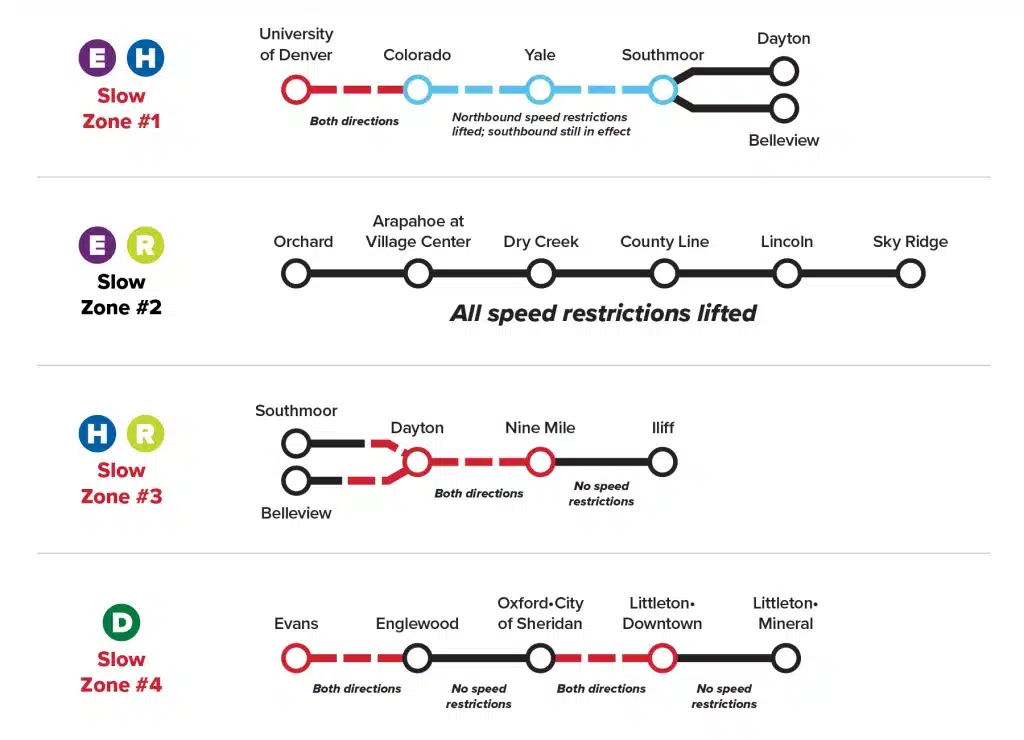 Remaining speed restrictions will continue to be lifted as track repair work is completed. RTD’s speed restrictions webpage is regularly updated with maintenance information and is available here.