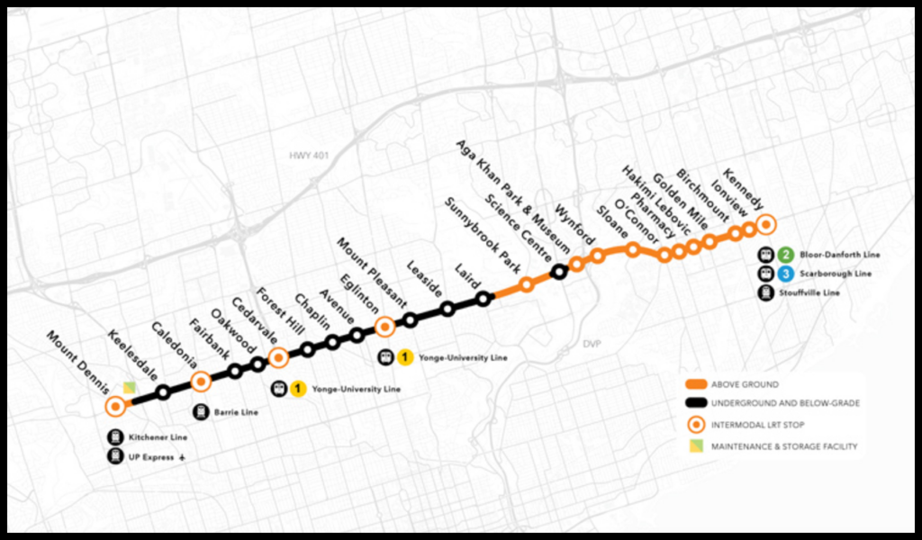 The 11.8-mile (19-kilometer) project (see map above) has been plagued with numerous construction delays, and as a result, relations between Metrolinx and the contractor have been strained, according to Railway Age Contributing Editor John Thompson, who reported in August on Metrolinx’s four light rail transit projects in the Greater Toronto Hamilton Area. Construction of the Eglinton Crosstown project started in 2011, with an expected launch date in 2020.