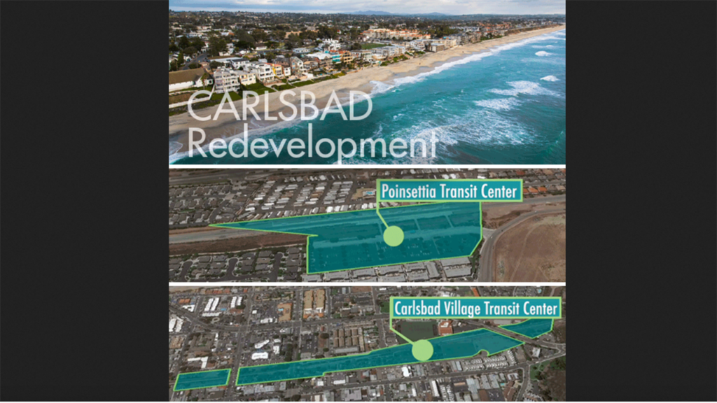 A Request for Proposal (RFP) was issued from April through July 2022 for the mixed-use development projects at NCTD’s Carlsbad Village and Poinsettia Transit stations. Proposers were evaluated based on the RFP criteria, which emphasized transit prioritization and transit amenities, according to NCTD, which noted that entering into Exclusive Negotiation Agreements “will allow all parties to work through the next steps in the planning process, including project designs and engaging with the community on project features.” The selected developers will be required to work within the city of Carlsbad’s entitlement process, which is customary for all new developments.