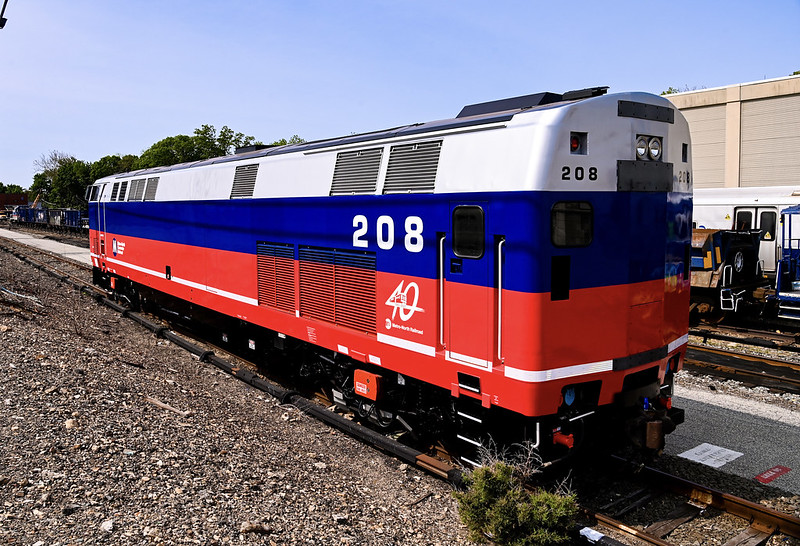 The first rebrand in the series was locomotive No. 208, which made its debut in May. Craft workers at Metro-North’s North White Plains Shop applied the vinyl wrap with the colors of silver, blue and red to pay homage to Metro-North’s original design. The design was created upon the railroad’s founding in 1983 for the railroad’s historic FL9 locomotives and worn by them until the last was retired in April 2007.